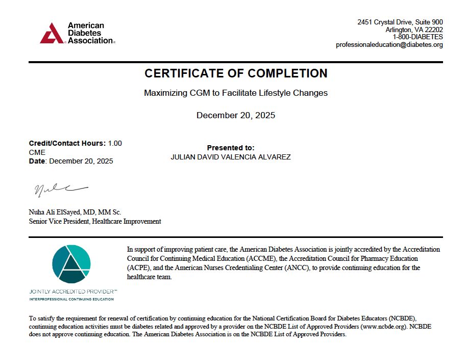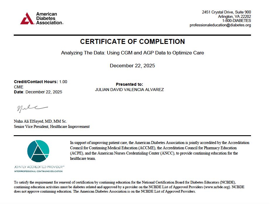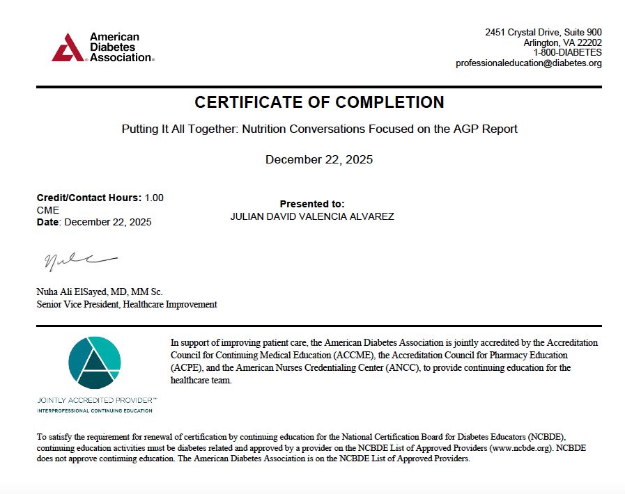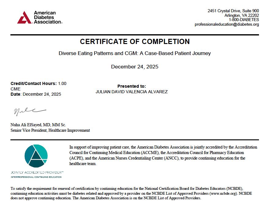 Especialista en Medicina Interna de la Universidad Nacional de Colombia (2014).